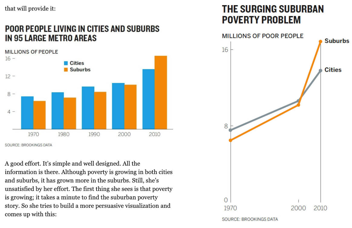 You are trying to reveal truths dormant in the data; to make a case; compete for attention.