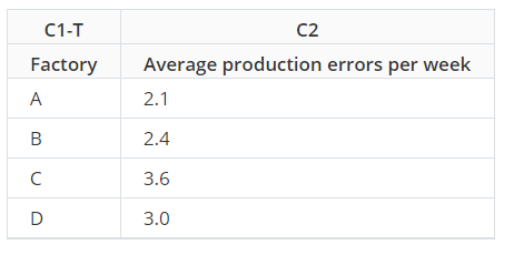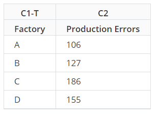 The manager summarizes the number of occurrences in this worksheet. The first row shows that factory A had 106 errors.