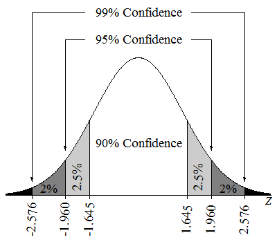 90%, 95%, and 99% Confidence Intervals