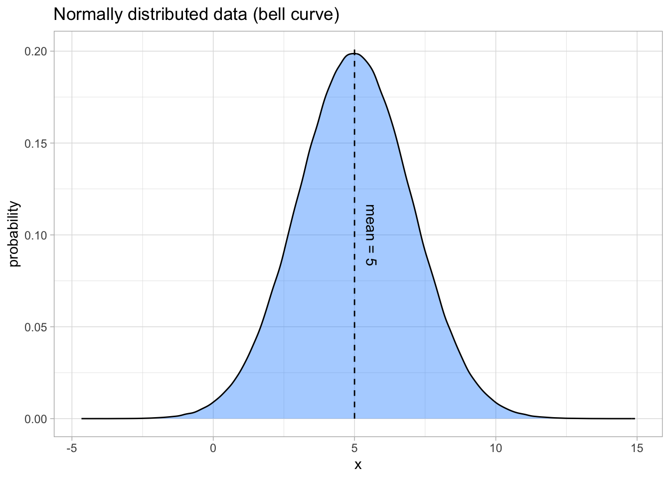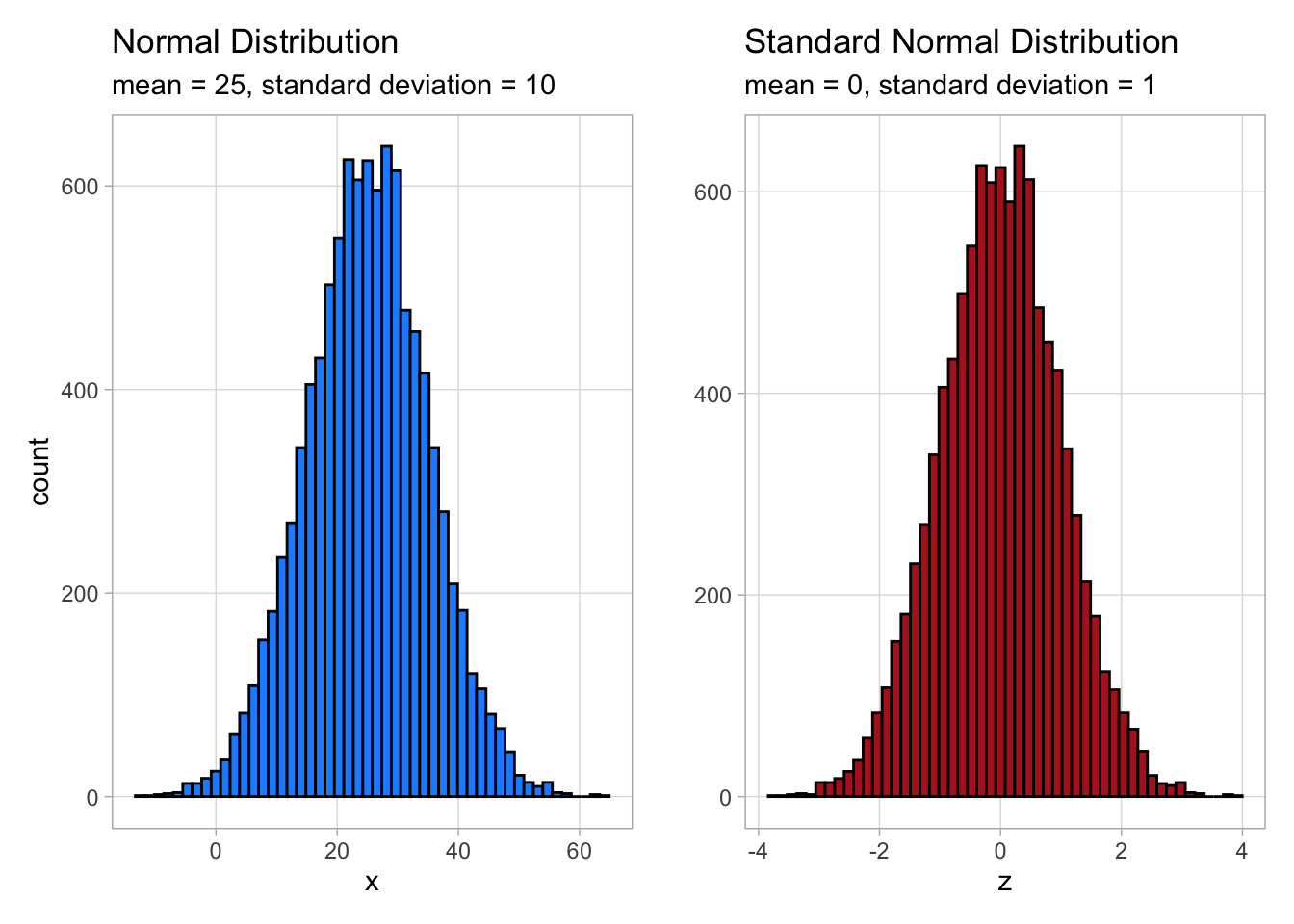 When the mean of a normal distribution is 0 and its standard deviation is 1, we call it the standard normal distribution, an important concept which we’ll cover later in the chapter.