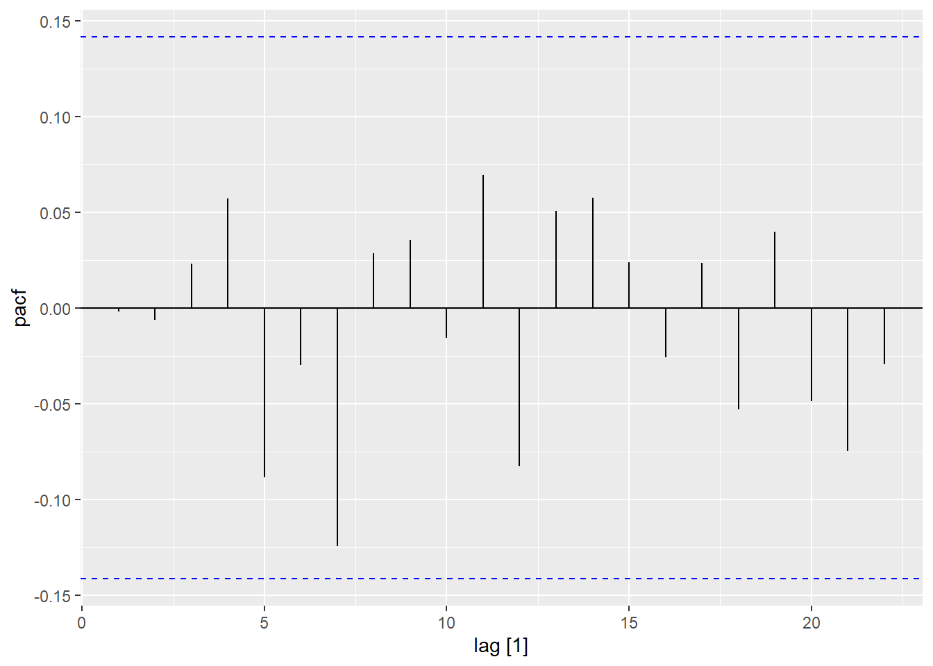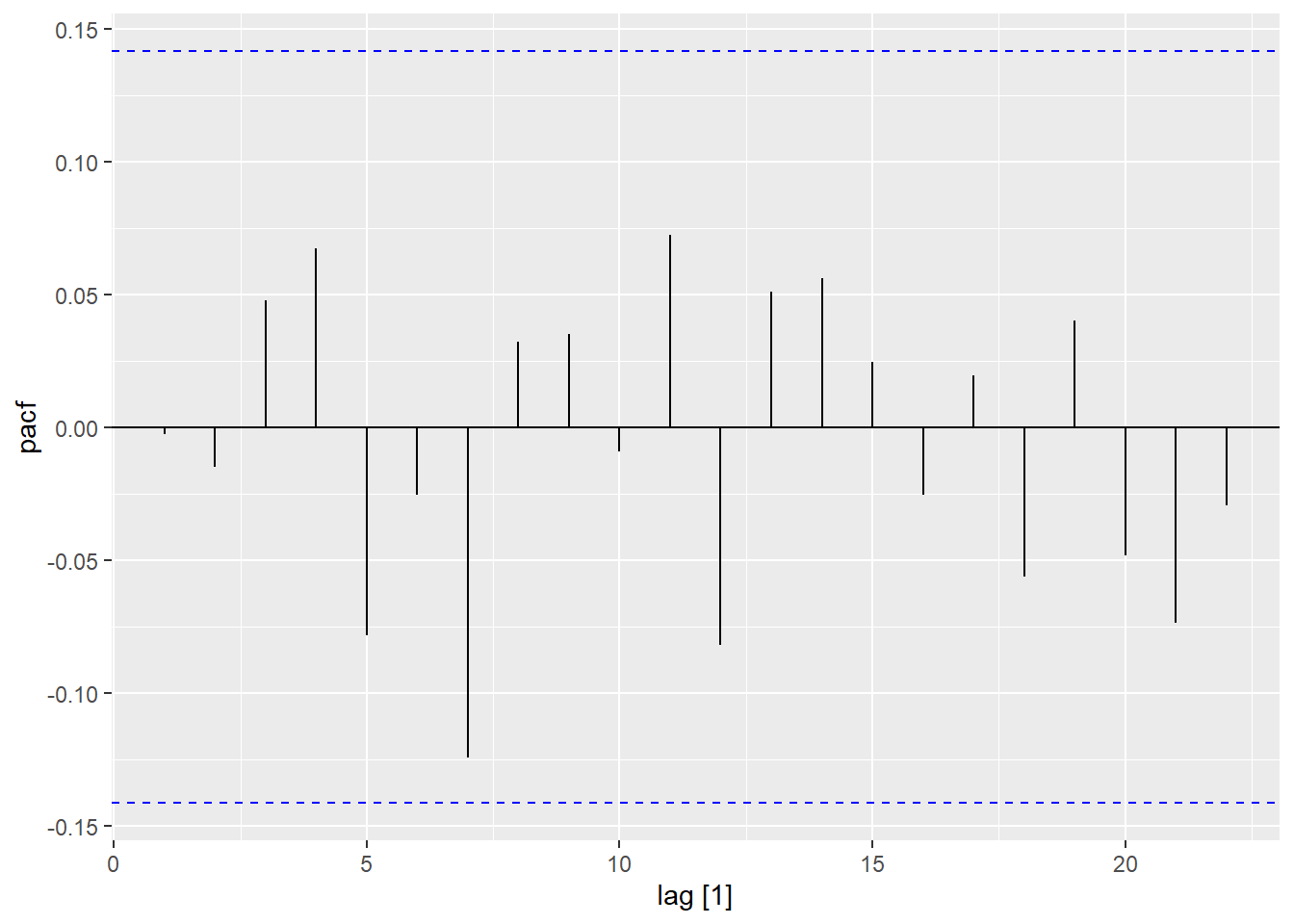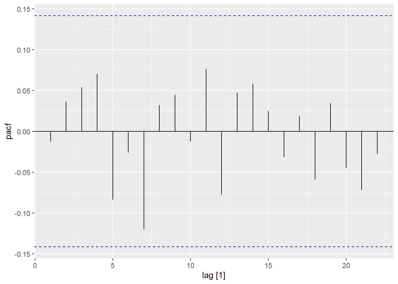 Figure 28: Partial correlogram of the residuals from the fitted regression model