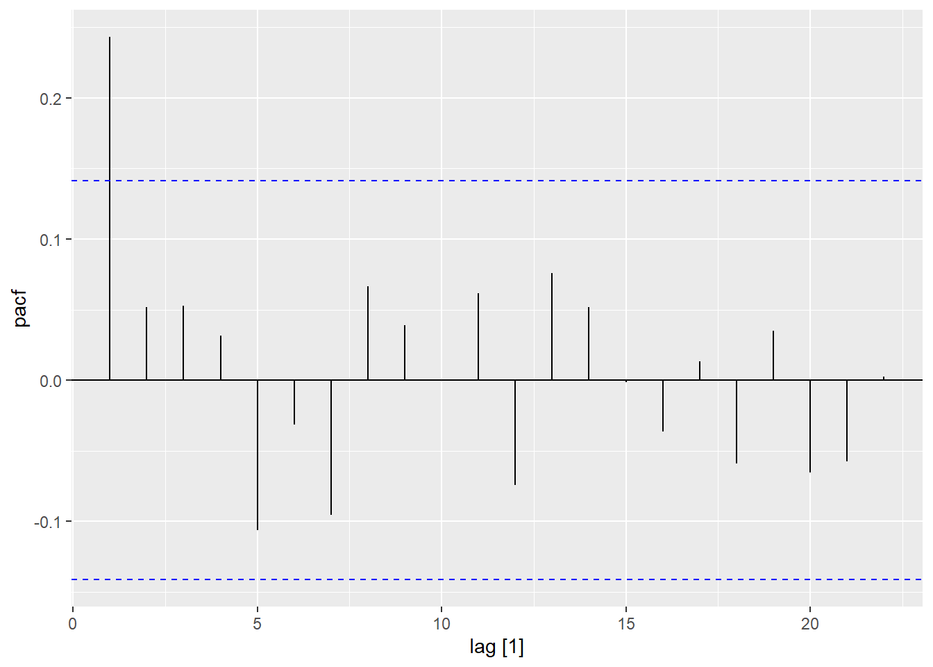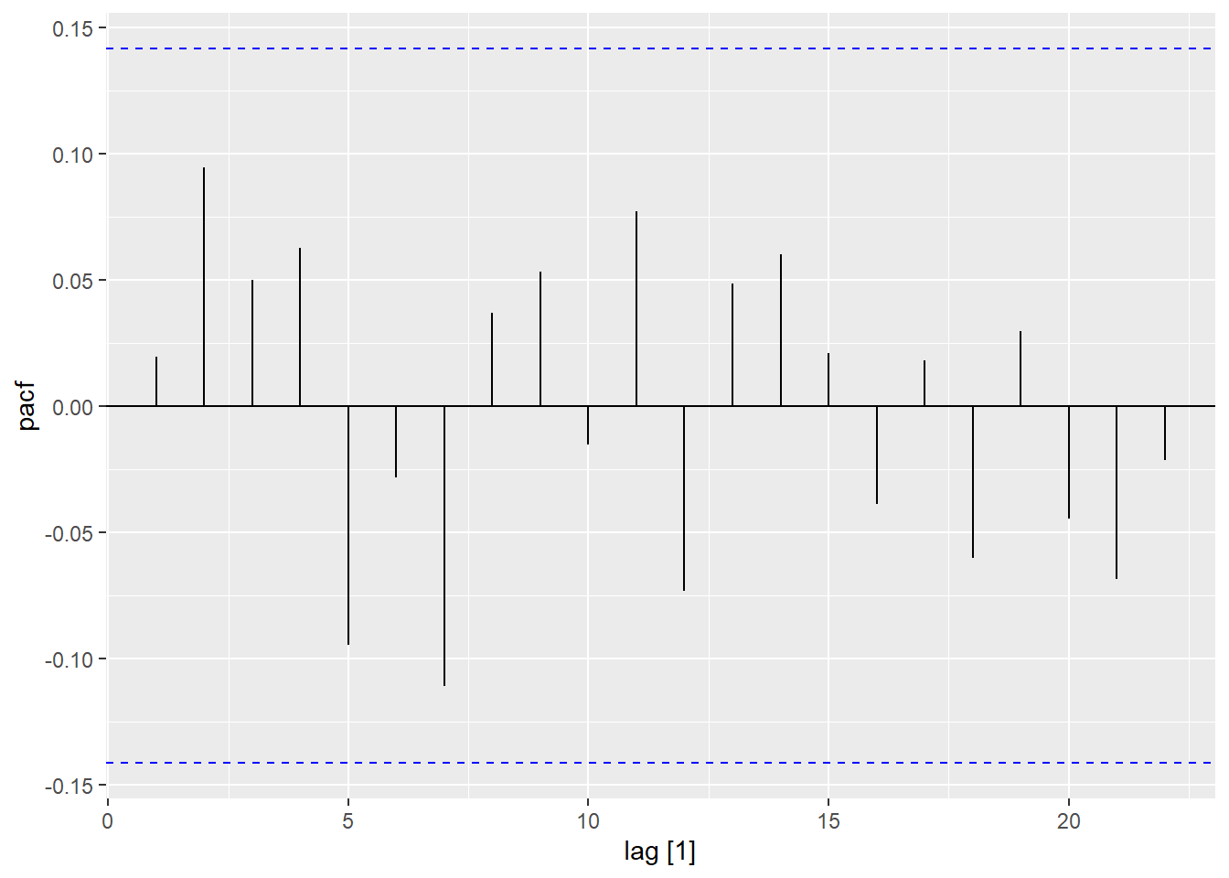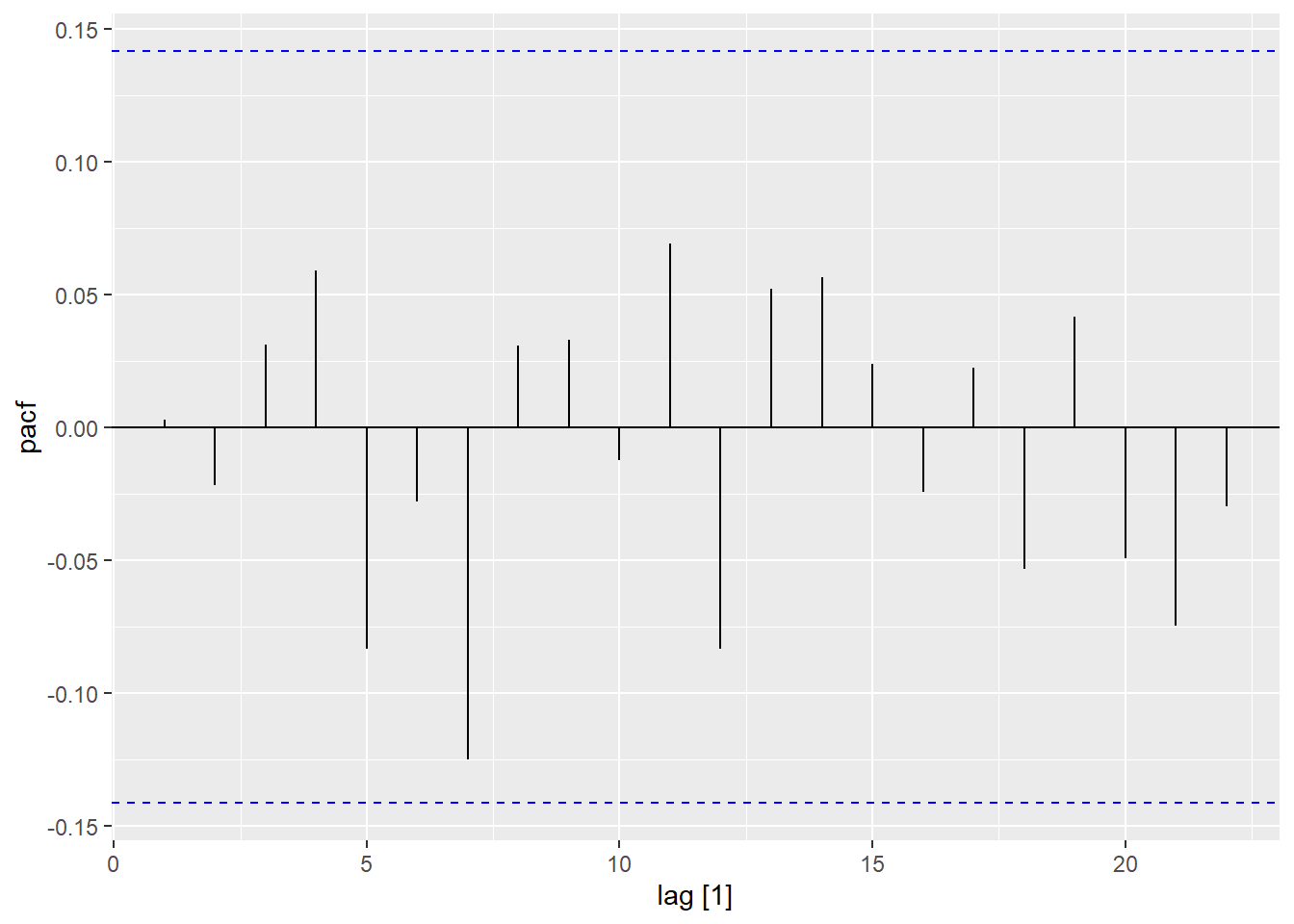Figure 28: Partial correlogram of the residuals from the fitted regression model