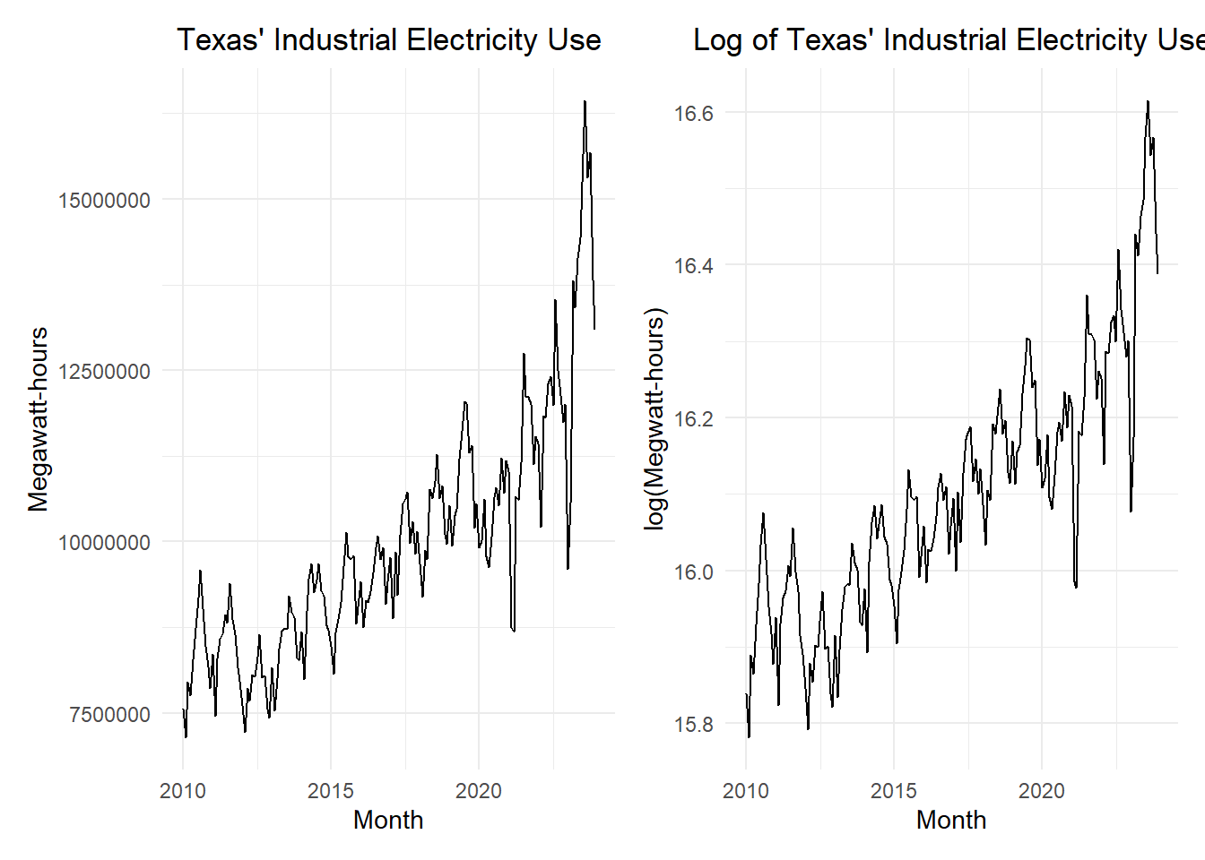 However \(\beta_1\) is for our normalized time variable. If we want to put it in terms of changes each month we would divide our estimate by \(\sigma_t\) (getting an estimate of 0.0124). If we would want it in terms of changes each year we would multiply by 12 (getting an estimate of 0.148).